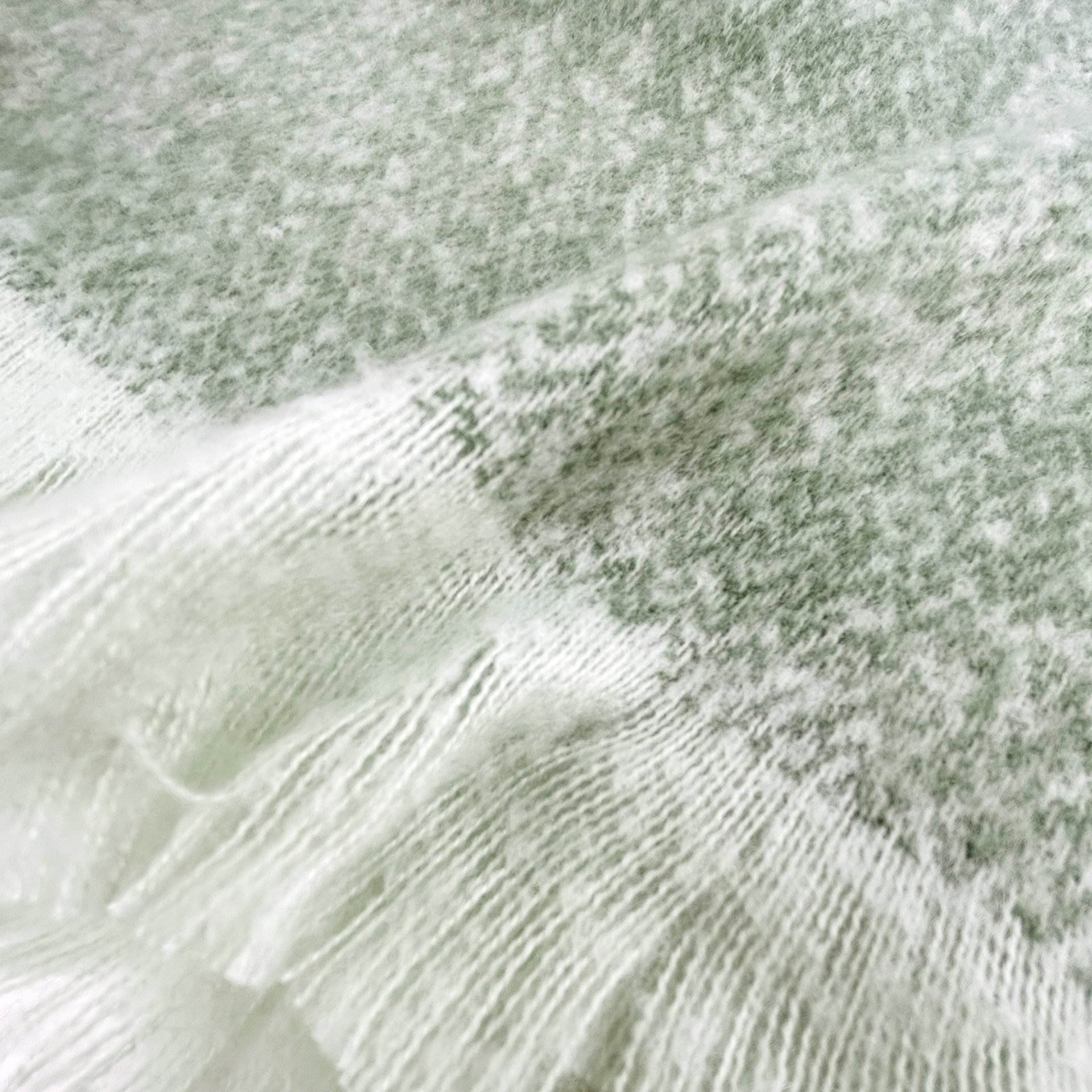 起毛されたふかふかの風合いがこの商品の特性でありますが、半面、毛抜けしやすいデメリットがあります。弊社はその点を改善すべく、2種類の糸をブレンドし毛抜けを極力抑え風合いも維持するといった加工技術を持っております。