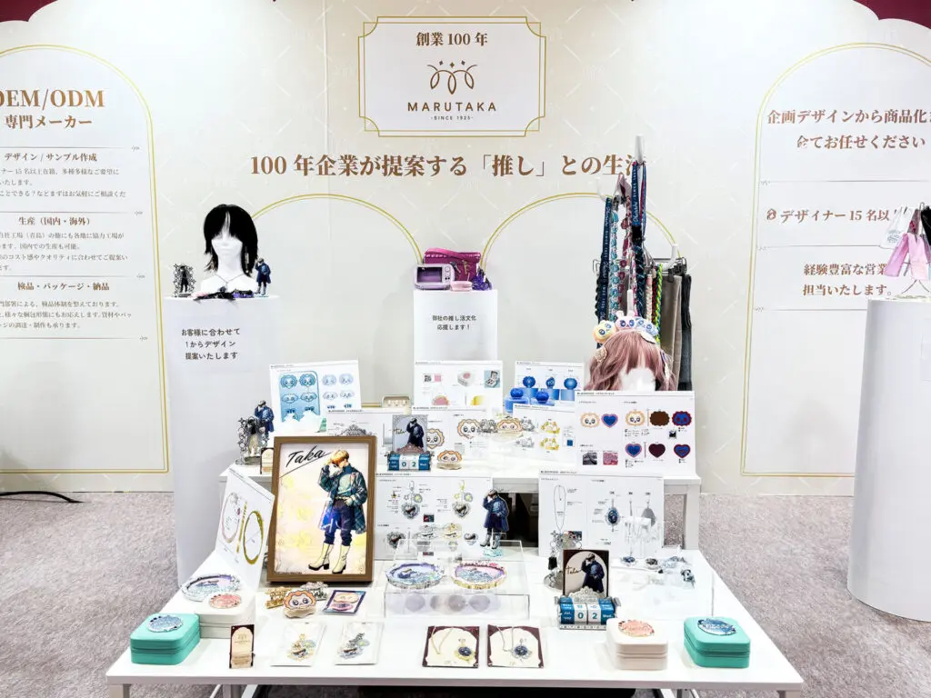 昨年まで出展していたライブ・エンターテイメントEXPOから出展先を移し、今年は推し活EXPOへ出展いたしました。今年で創業100周年を迎えた弊社が100年の実績や知見を活かし、今では多くの方の生活に欠かせない「推し活」にフォーカスを当てたグッズを作りました。