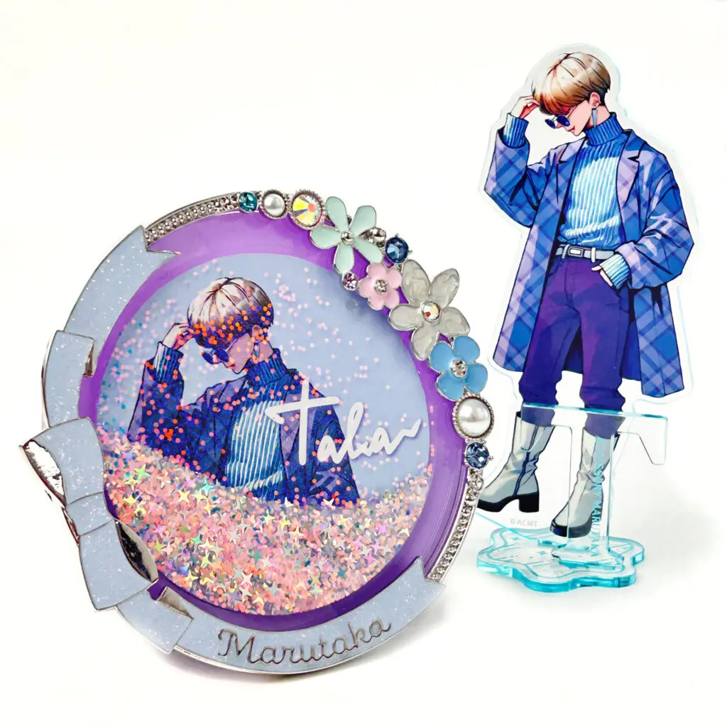 通常のアクリルスタンドと違い、側面のみを染色したアクリルスタンドです。